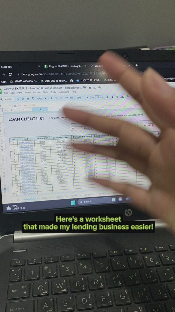 - Each client will have their own Loan Book for ease of tracking their loan amount due as well as tracking all their payments
